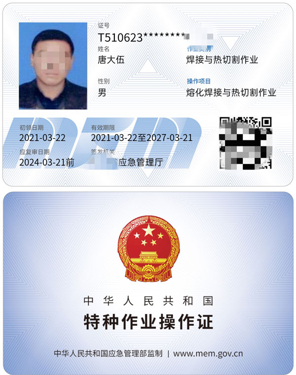 特種作業-熔焊,又叫熔化焊,是一種最常見的焊接方法。所謂熔焊,是指焊接過程中,將聯接處的金屬在高溫等的作用下至熔化狀態而完成的焊接方法,可形成牢固的焊接接頭。由于被焊工件是緊密貼在一起的,在溫度場、重力等的作用下,不加壓力,兩個工件熔化的融液會發生混合現象。待溫度降低后,熔化部分凝結,兩個工件就被牢固的焊在一起,完成焊接的方法。由于在焊接過程中固有的高溫相變過程,在焊接區域就產生了熱影響區。固態焊接和熔焊正相反,固態焊接沒有金屬的熔化。特種作業-熔化焊接與熱切割 作業-焊工操作證,這個焊工證不分等級,由各省安全生產監督管理局(簡稱省安監局)頒發,哪里發的都可以通用。3年年審一次,6年換一次,證件過期無效。