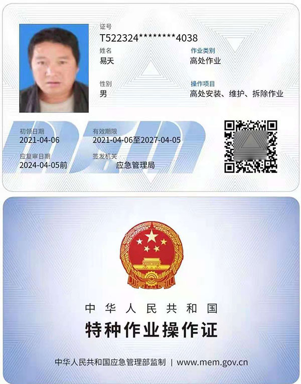 《特種作業(yè)證》特種上崗操作證由應(yīng)急管理部 頒發(fā),哪里發(fā)的都可以通用的,以前叫IC卡,現(xiàn)在叫感應(yīng)卡,3年年審一次,和身份證一樣的,只要你有專(zhuān)用的讀卡機(jī),就能夠讀出卡里面的資料,但是這個(gè)讀卡機(jī)國(guó)家只給有資質(zhì)的單位,比如學(xué)校,應(yīng)急管理廳等才有,這證不管你拿去哪里,只要有讀卡機(jī)的地方都可以讀卡與年審,查詢(xún)方式也可以上發(fā)證部門(mén)應(yīng)急管理廳的網(wǎng)站,上輸入證號(hào)查詢(xún)的,也可以用微信掃IC上面的二維碼查詢(xún)。