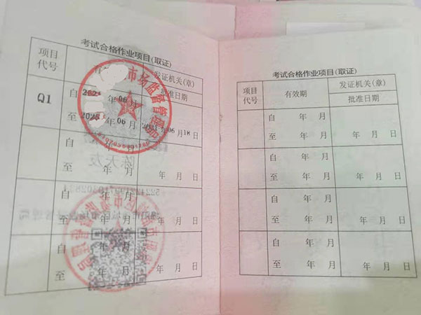 考試內容分理論知識和實際操作。理論考試題目數量為100題,考試時間為60分鐘。實際操作考試內容為部件識別、基本操作、應急處置,70分及格,證書由市場監督管理局頒發的證書!