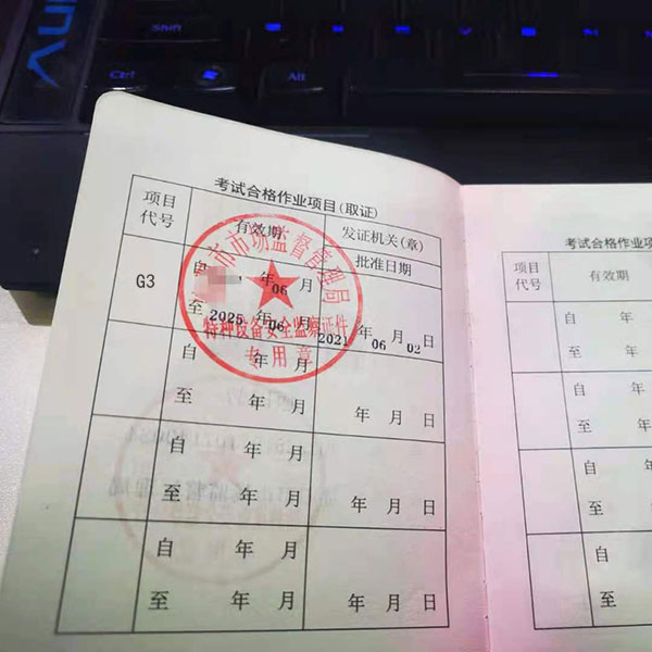考試內容分理論知識和實際操作。理論考試題目數量為100題,考試時間為60分鐘。實際操作考試內容為部件識別、基本操作、應急處置,70分及格,證書由市場監督管理局頒發的證書!