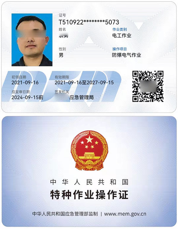 防爆電氣作業是電工操作證細分證種之一,屬于上崗證。防爆電氣作業人員必須經專門的安全技術培訓并考核合格,取得特種作業操作證后方可上崗作業。需注意:原安監局操作證有效期為6年,3年復審6年換證,新證每3年復審即可