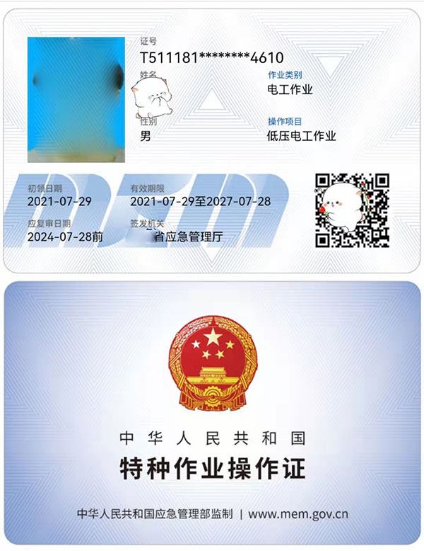 (即應急管理局)頒發,適用于1000V以下的電工作業,是電工行業用途最廣泛的證件。